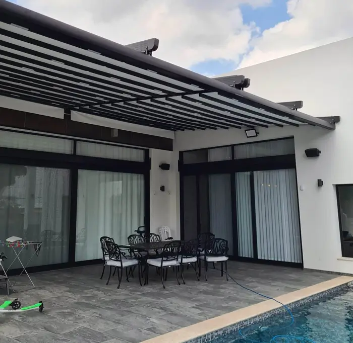 כן. ניתן להוסיף מערכות הצללה נוספות בהתאמה לפרגולה קיימת. - מה האפשרויות לסגירת צדדים של הפרגולה?