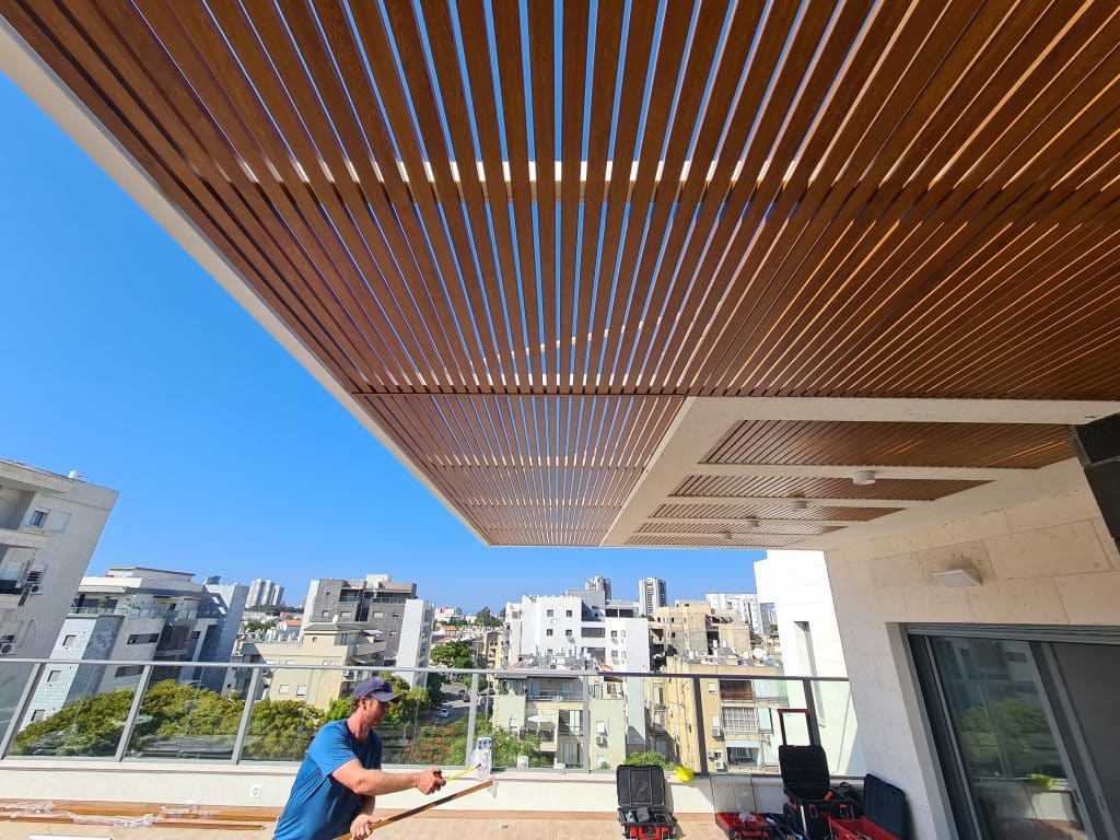 כן. ניתן לשלב עץ עם אלומיניום, זכוכית, בד או פוליקרבונט ליצירת מראה ייחודי ועמידות מוגברת. - מה כולל תהליך הביצוע מרגע ההזמנה ועד ההתקנה?